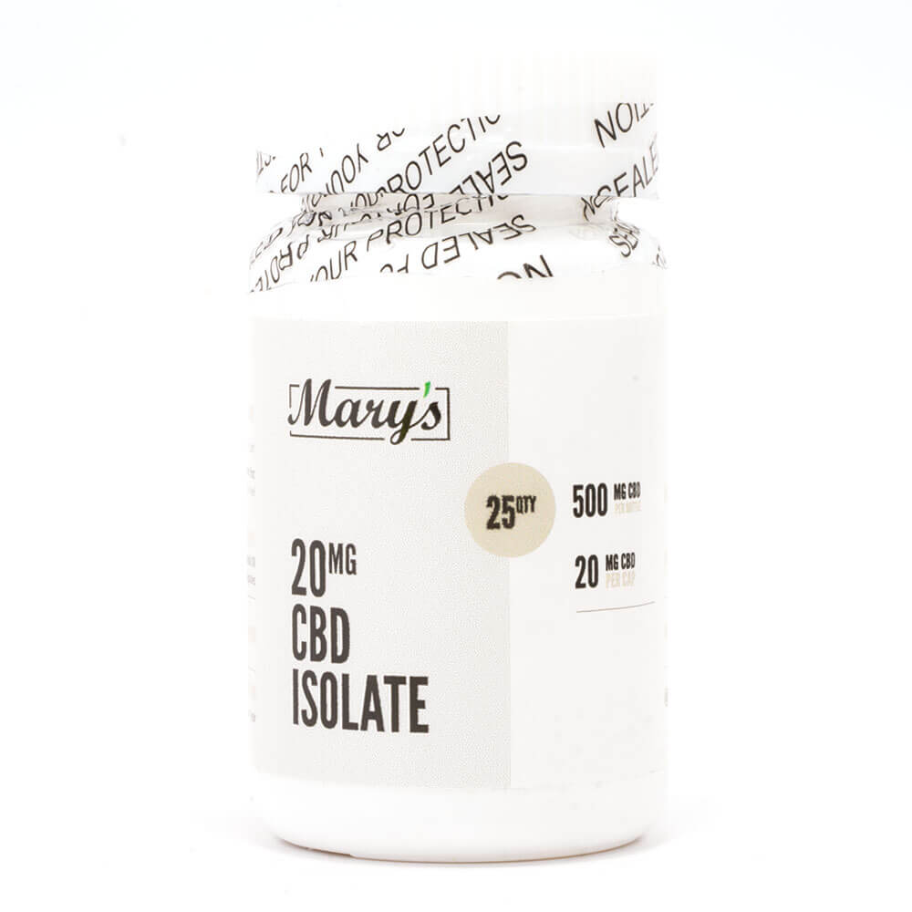 Each 500mg bottle includes 25 capsules containing 20mg of CBD Isolate each