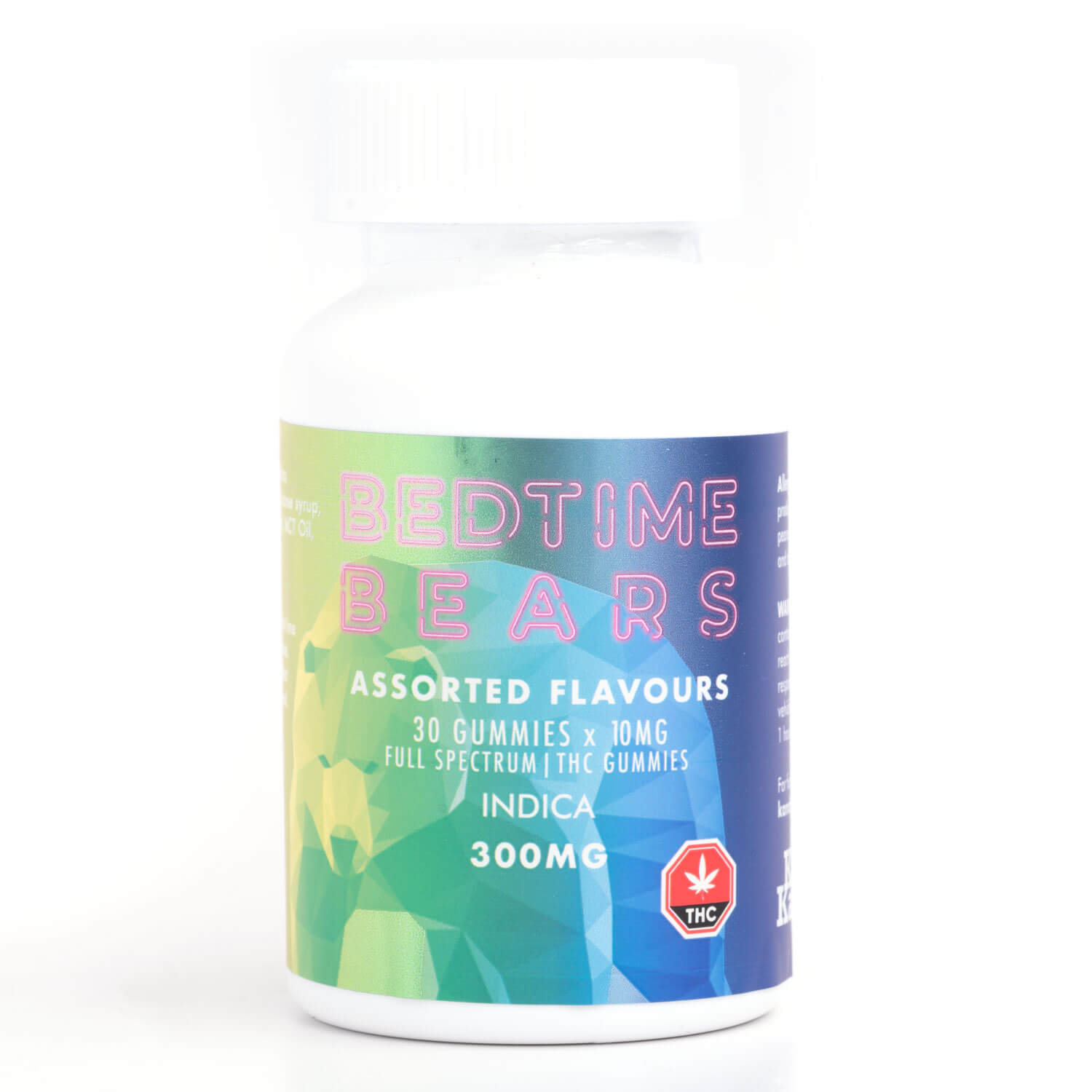 300mg THC Indica Bedtime Bears Bears by Kandy Kandy come in a variety of flavours. Each bottle includes 30 gummies, each containing 10mg of THC each