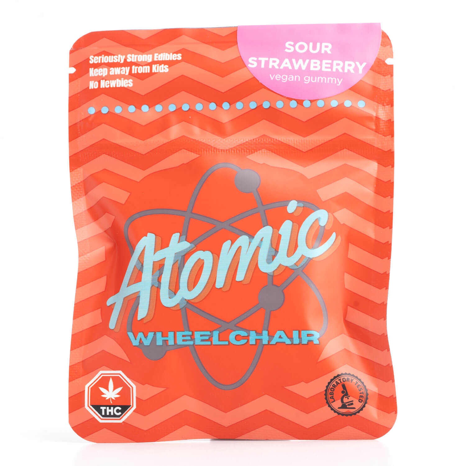Atomic Wheelchair 5000mg THC Vegan Gummy is packed with sweet and sour fruity flavors and infused with a highly concentrated dose of full-spectrum cannabis oil. Potent, effective, and delicious. Whenever you ingest these tasty treats, your mood will be brighter, you will sleep better, and feel energized. A great and easy way to improve your mental and physical health.