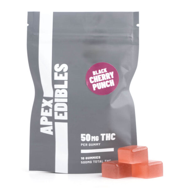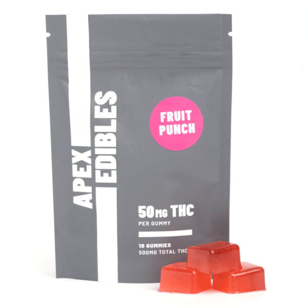 Apex Edibles come in 10 piece bags with 50mg THC per gummy for a total of 500mg THC per package. Enjoy Apex Edibles in Blue Raspberry, Fruit Punch, Grape, Kiwi, Orange flavors or try all at once with their variety pack!