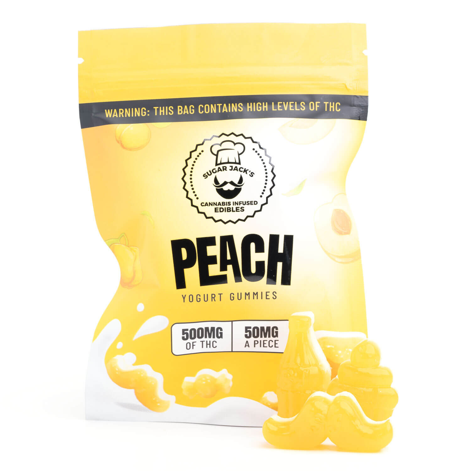 Sugar Jack’s 500mg THC Yogurt Gummies are made with all-natural flavours & colors. They are handcrafted, infused with premium distillate extract during the cooking process. Our refreshing Strawberry & Peach Yogurt Gummies are sweet, juicy & incredibly tasty! Each 500mg package contains 10 gummies containing 50mg of THC each.