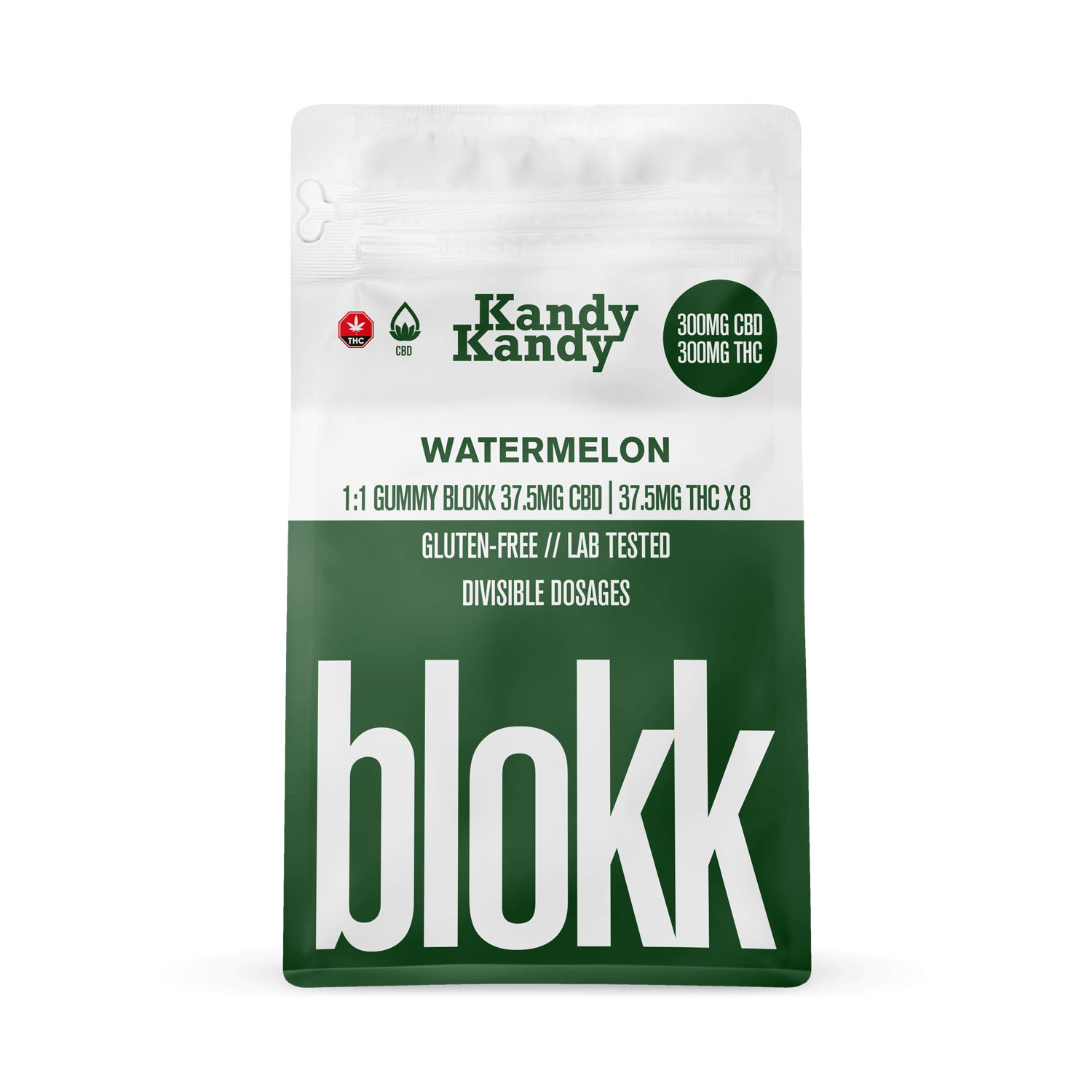 600mg 1:1 Blokk Gummies by Kandy Kandy is the perfect edible for sharing. Each blokk has 8 dividable squares which contain 37.5mg of THC and 37.5mg of CBD each.