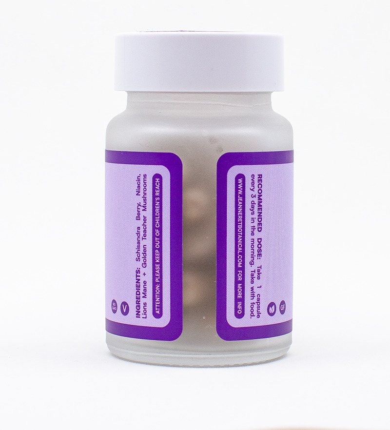 Classic blend, fresh identity. Formerly known as ‘Discover’, this supplement caters to individuals in pursuit of an extra spark. Unleash your latent creativity, sustain concentration, and boost your efficiency with our unique mixture of Schisandra Berry, Lion’s Mane, Golden Teacher Mushroom, and Niacin.