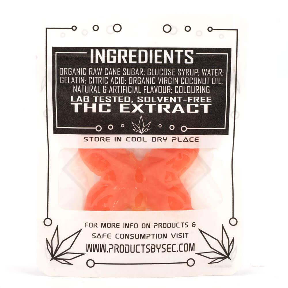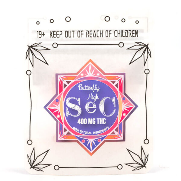 The Butterfly High is SeC’s second highest dosage gummy, with 400mg of THC extract. Granted, this is a treat that is meant for users to experience the butterfly effect. In other words, users should be fully comfortable and confident in their edibles tolerance level. Strap in and prepare yourself for what may end up to be an evening of chaos theory.