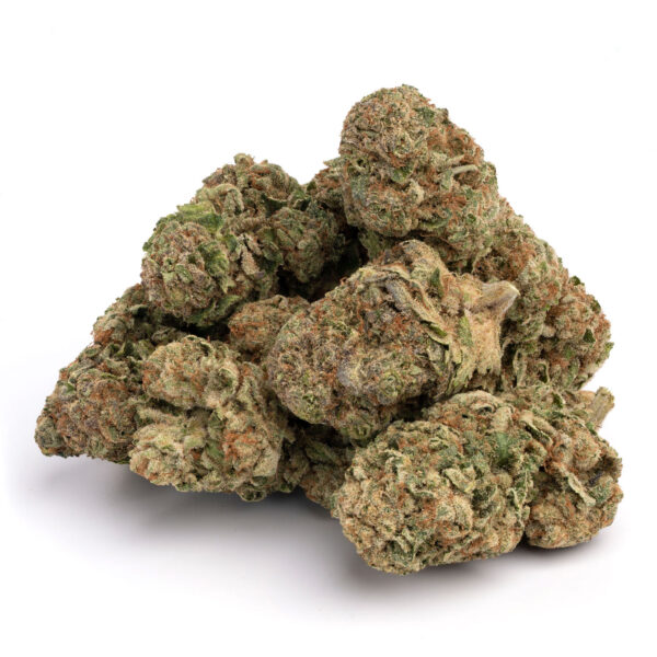 This strain has a real presence. The nugs are famously oversized, shaped like perfect little Christmas trees. They boast a bright, minty green color that’s absolutely covered in a forest of thin, fiery orange hairs. The whole thing is finished with a chunky, frosty coating of minty white trichomes that make it look like it’s been dusted with sugar. It’s a gorgeous bud that promises—and delivers—serious potency.
