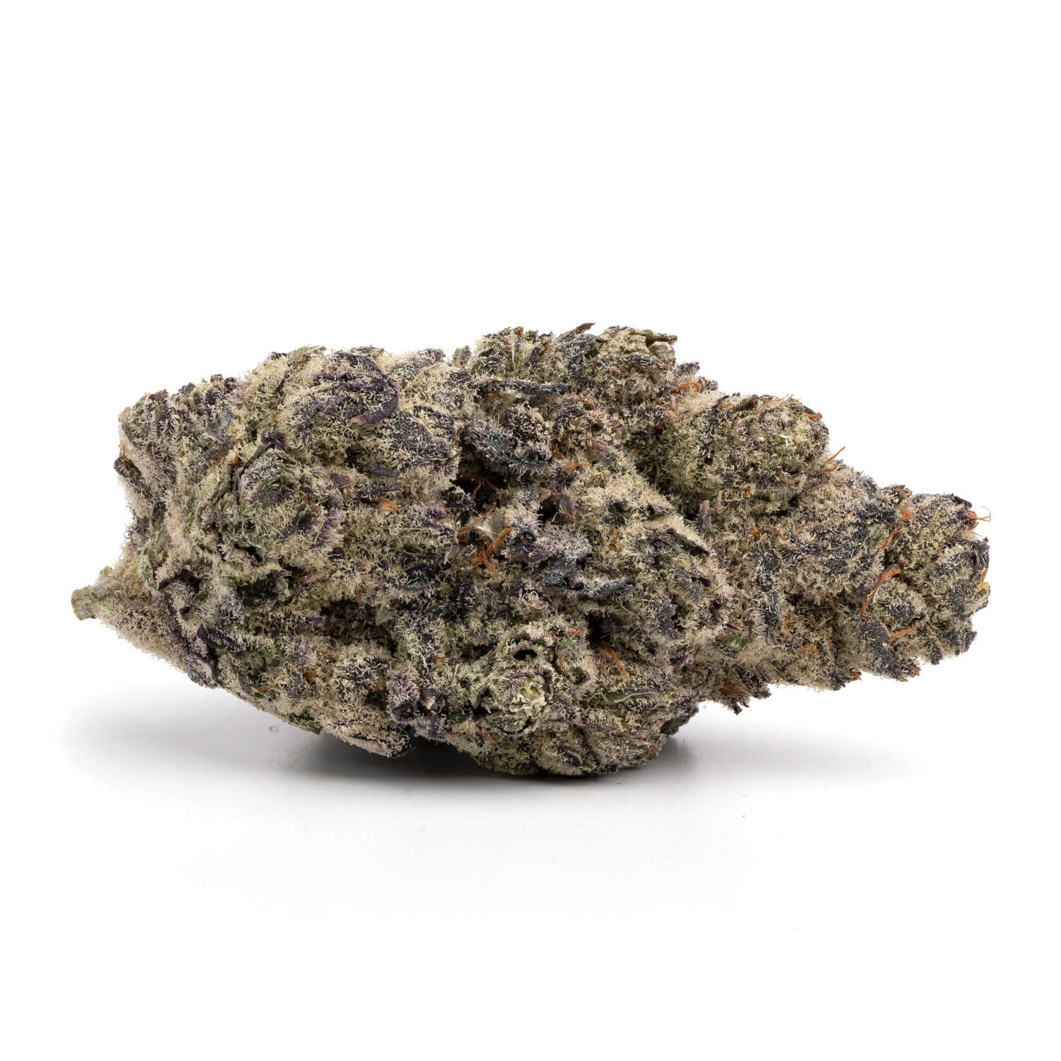 Exhibiting a typical indica-like appearance, the nugs are thick, dense, and slightly airy. As well as, having a deep olive-green color with subtle hues of purple throughout. The nugs are also covered in trichomes, which make them sticky to the touch.