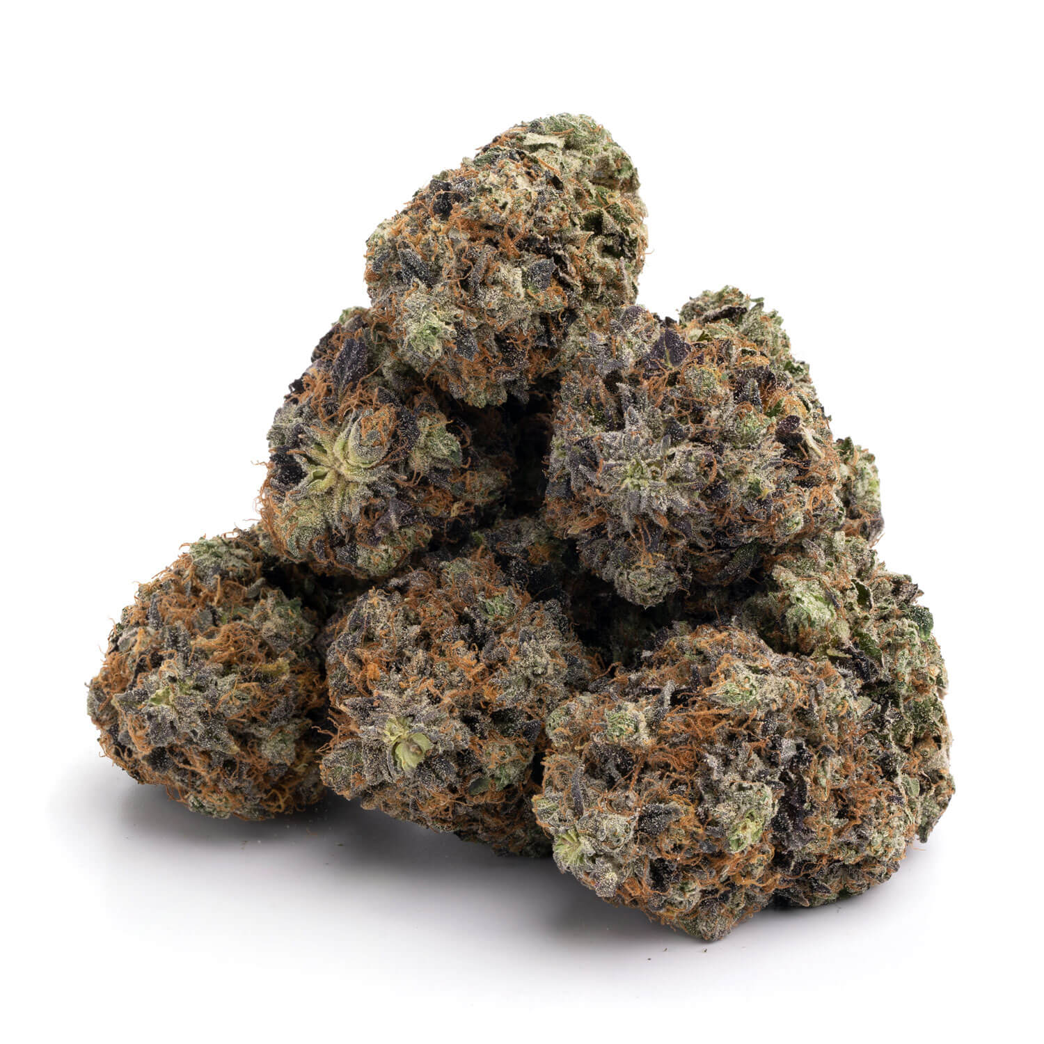 The buds themselves are medium to large in size and have a slightly curved shape, with a pointed tip that tapers off at the end. The trichomes on the buds give them a frosty appearance, with a sparkling layer of resin covering the surface.