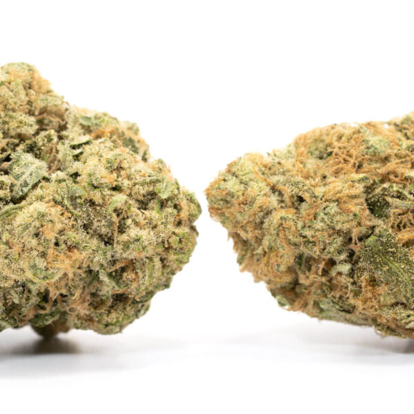 Forget what you know about the Green Goblin, this one’s far from an evil maniac. The buds are forest green in colour, with bright orange nodules, and covered in crystals. The aroma is skunky and earthy, with notes of diesel and musky, sweet undertones.
