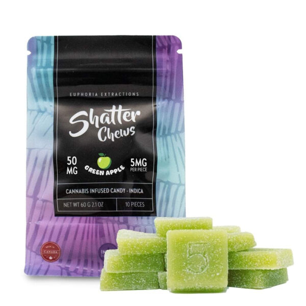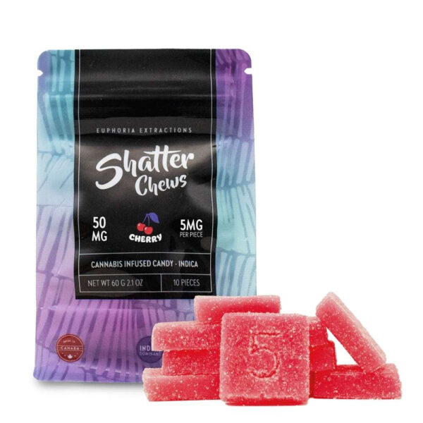Indica 50mg Shatter Chews by Euphoria Extractions are made with lab tested, full-spectrum extracts sourced from the finest Canadian cannabis.
