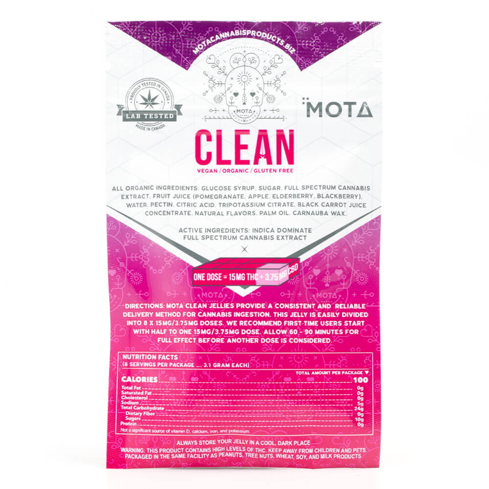 Made from scratch, these jellies are infused with 120mg of THC and 30mg of CBD. Each package contains one Indica Cherry Berry Clean Jelly.