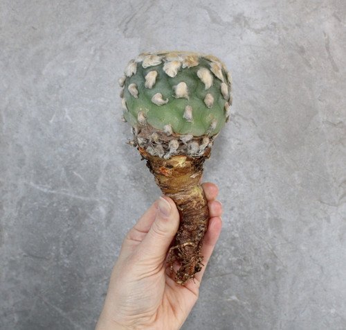 RECOMMENDED POT SIZE: 14cm Please note that the plant purchased, will be similar to one that is pictured. Introducing the magnificent Lophophora diffusa variety Koike cactus – a stunning cultivar that stands as a testament to the beauty and diversity of cacti. This single-headed marvel captivates with its grandeur and showcases large, fluffy tufts that beautifully adorn its form. This stunning variety is a Peyote collectors dream! Cultivated with care and attention, the Lophophora diffusa Koike cactus is a true masterpiece in the world of botany. With its impressive size and striking appearance, it commands attention and adds a touch of natural elegance to any setting. This cultivar of Lophophora diffusa is celebrated for its unique characteristics, including its large, fluffy tufts that set it apart from other varieties. Each tuft is a work of art, adding depth and texture to the cactus’s already impressive presence. Perfect for both indoor environments or greenhouses (heated in the winter), the Koike cactus thrives in bright indirect sunlight and well-draining soil, requiring minimal maintenance to flourish. Don’t miss the chance to add this extraordinary cultivar to your cactus collection. With its grand stature and breathtaking beauty, the Lophophora diffusa variety Koike cactus is sure to become a cherished centerpiece in your botanical haven. Plants will be sent bare rooted: Please ensure that you have your substrate and pot ready for your new plant! Sending plants bare rooted is the safest way to protect them, from damage in transit and rot. Caution: Toxic if eaten.