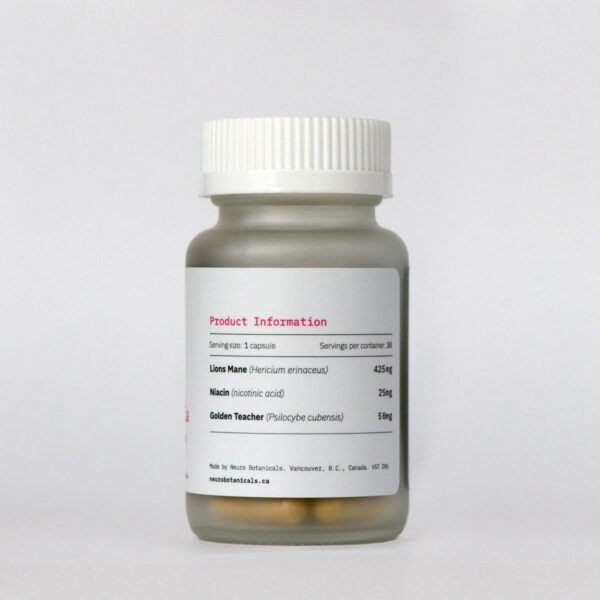 Each capsule contains 50mg of Golden Teacher magic mushrooms. The perfect amount for those new to psilocybin micro-dosing and wanting to take a mellow approach. Enjoy a boost to your mood and cognition with this natural formula from Neuro Botanicals. There’s 30 capsules in each container.