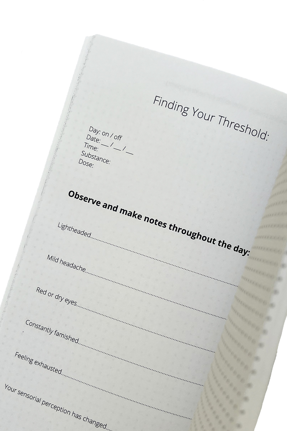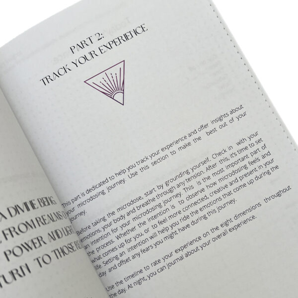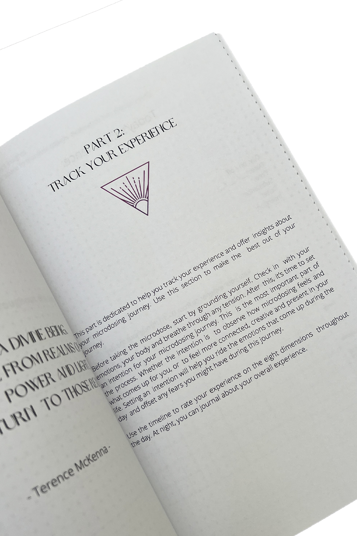 This journal is for everyone who’s decided to plug into the life force, shift their perspective and expand their lives, but has no idea how to start. It will guide you through your microdosing journey, from choosing your substance, finding your dose, selecting the intaking protocol to offer a structured way to track your experiences daily.