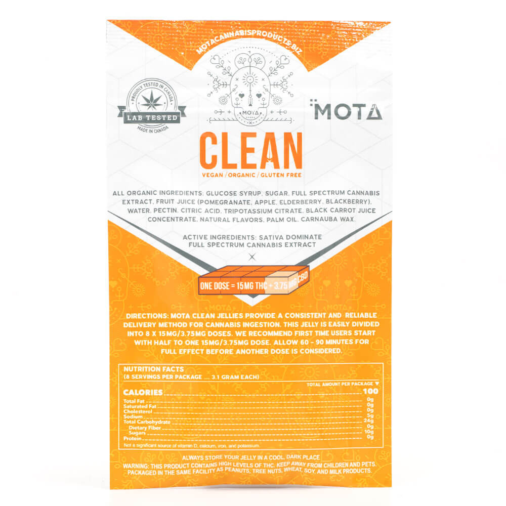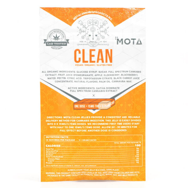 Made from scratch, these jellies are infused with 120mg of THC and 30mg of CBD. Each package contains one Sativa Far Out Fruit Clean Jelly.