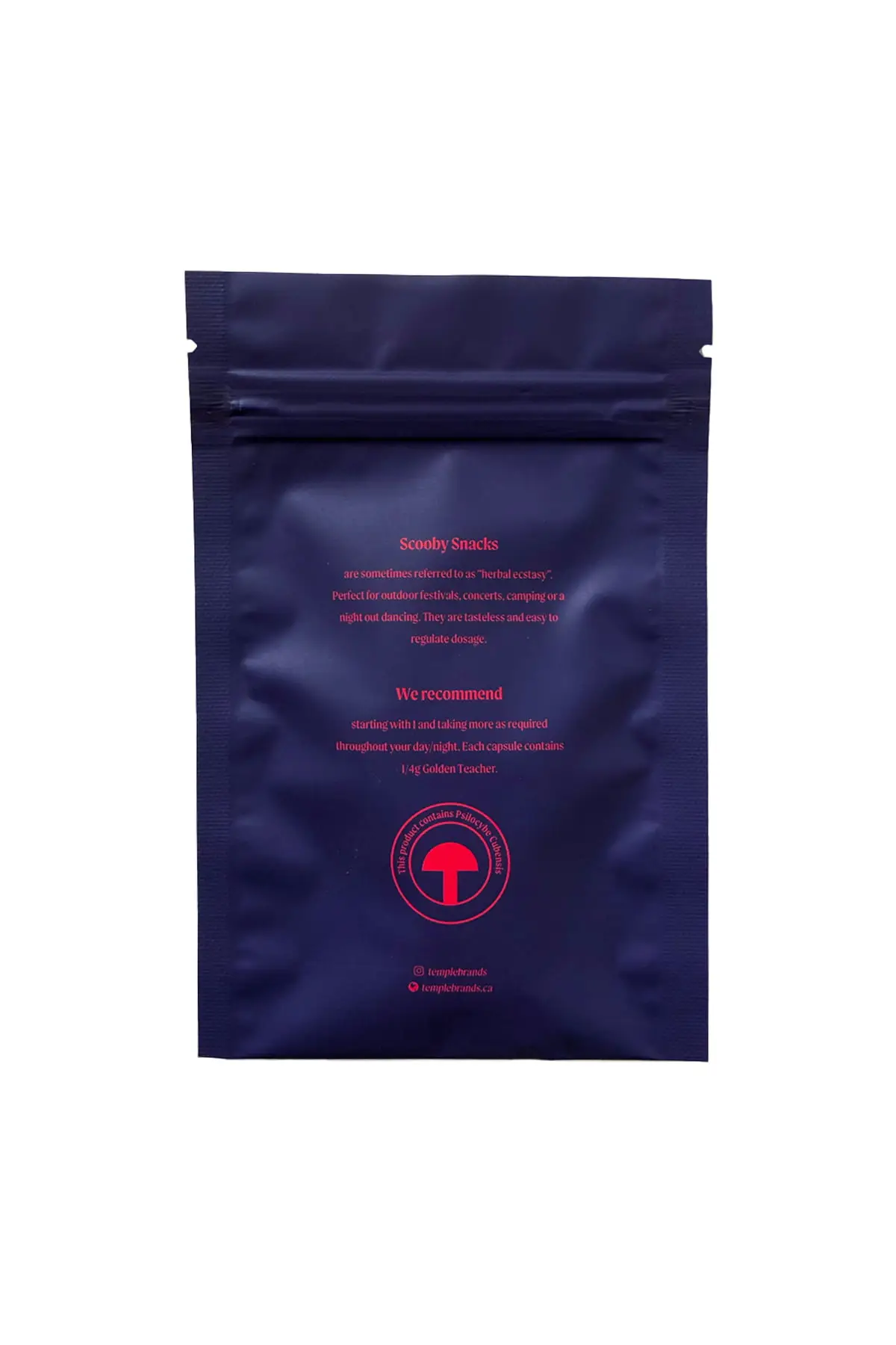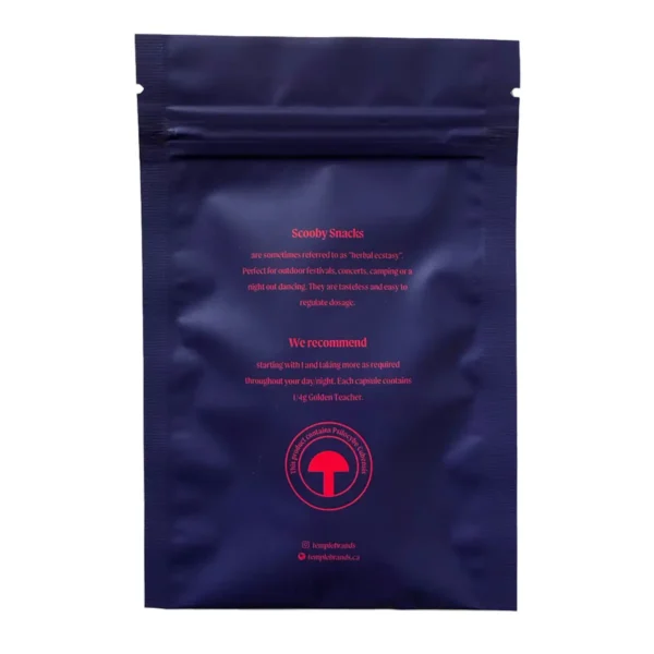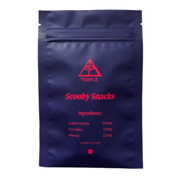 Temple Scooby Snacks, also called Scooby Snax, Scoobies, or Scoobs are fun little pills that contain 250 mg of psilocybe cubensis, 125 mg of Bee Pollen and 125 mg of Ginseng. This combination of herbs provides a balanced and energetic experience.