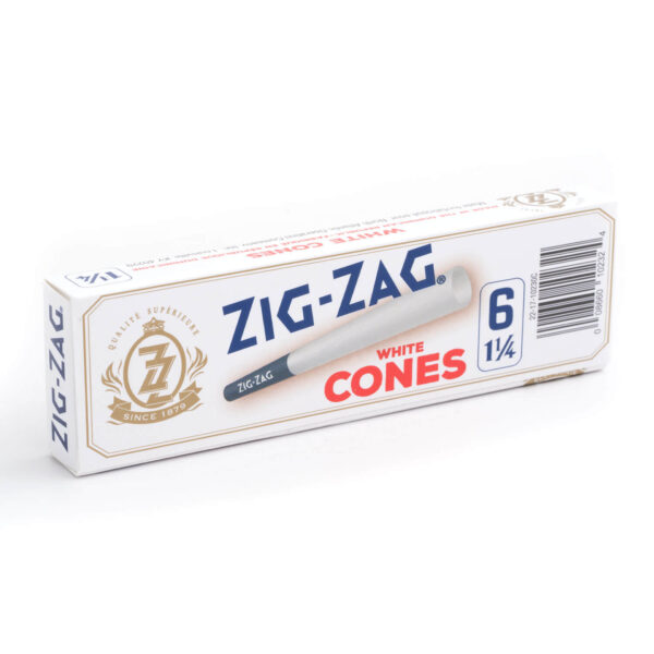Zig Zag Rolling Paper Cones are perfect for those looking to pack a rolling paper on the go. Each box contains 6 1 1/4 cones and 1 wooden packing tool. Grind up your bud and fill up these cones for a fast and conviencet way to medicate. Each cone comes with a zig zag filter.